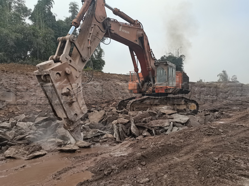 破碎錘此錘可配備50噸-100噸挖掘機(jī)使用??捎糜谟捕仍?5兆帕及以下石料的破碎施工。
